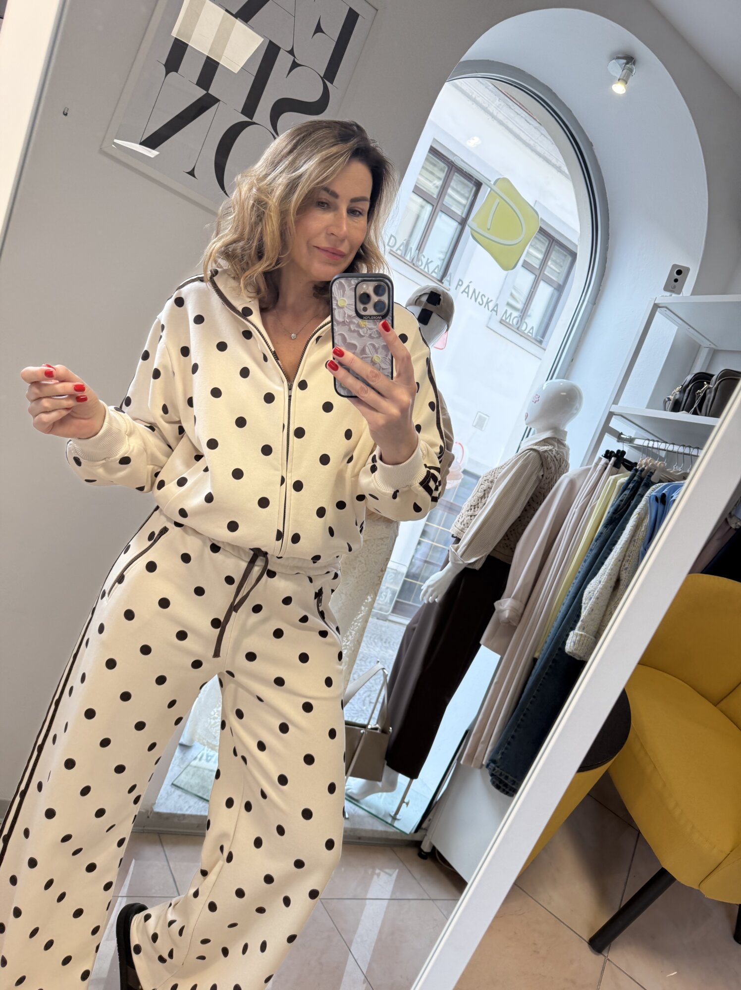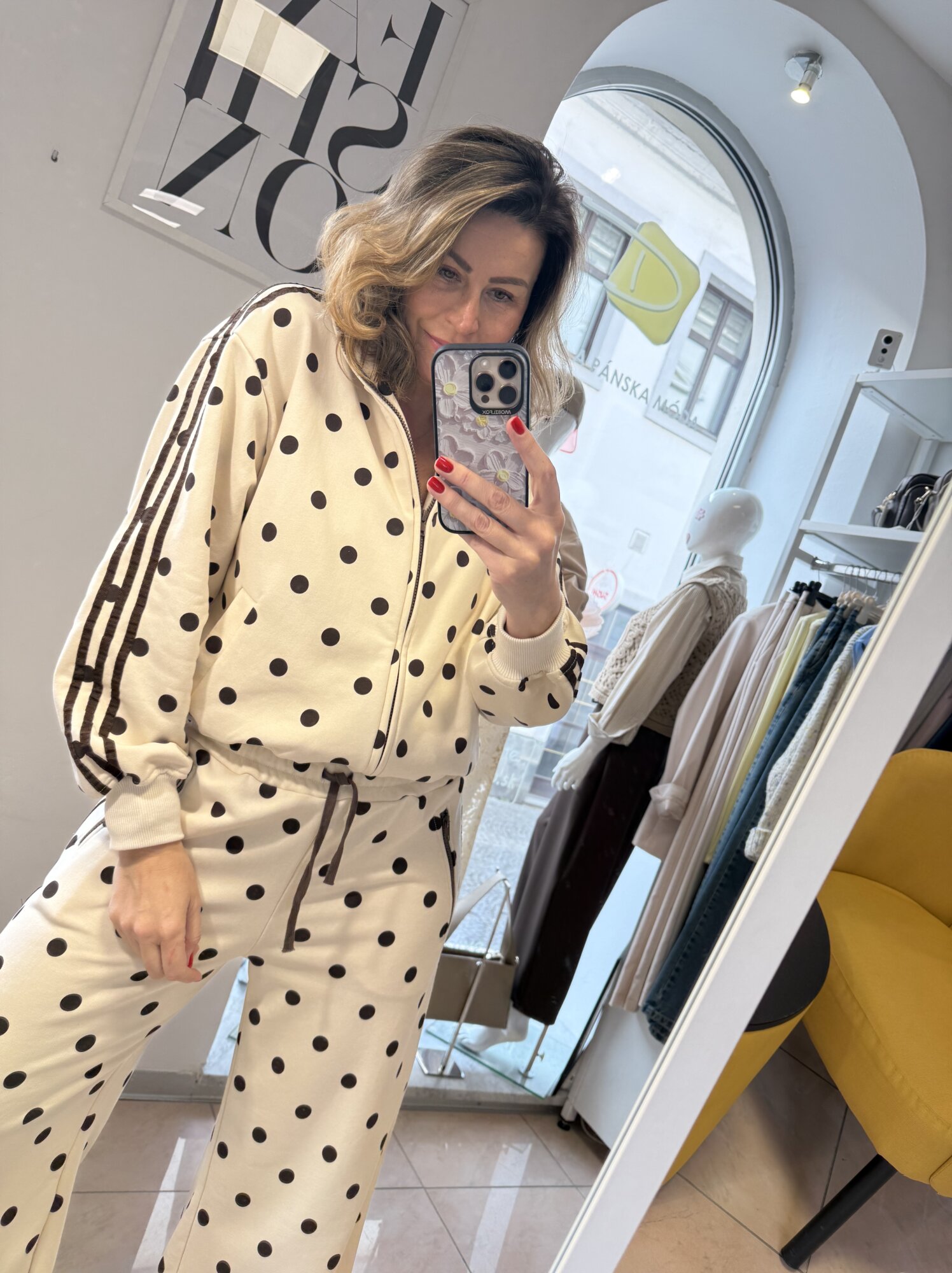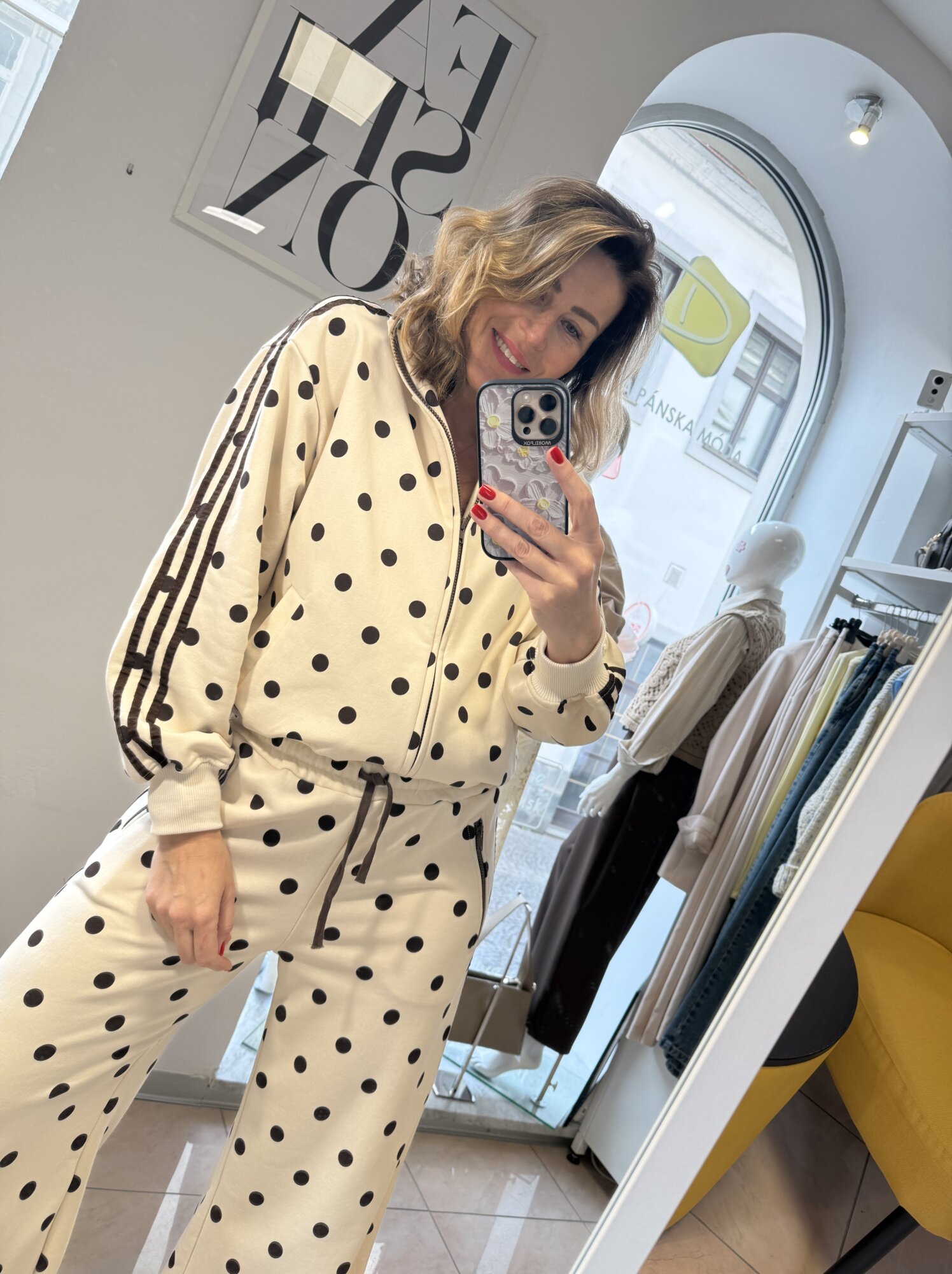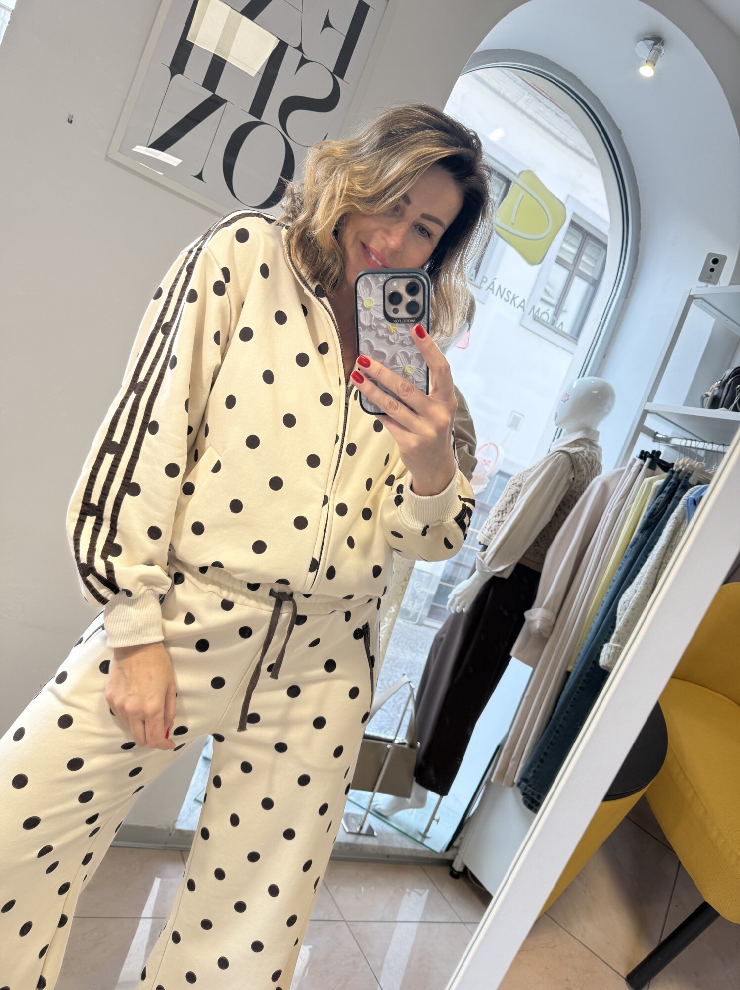 Farba: smotanová s čokoládovými bodkami