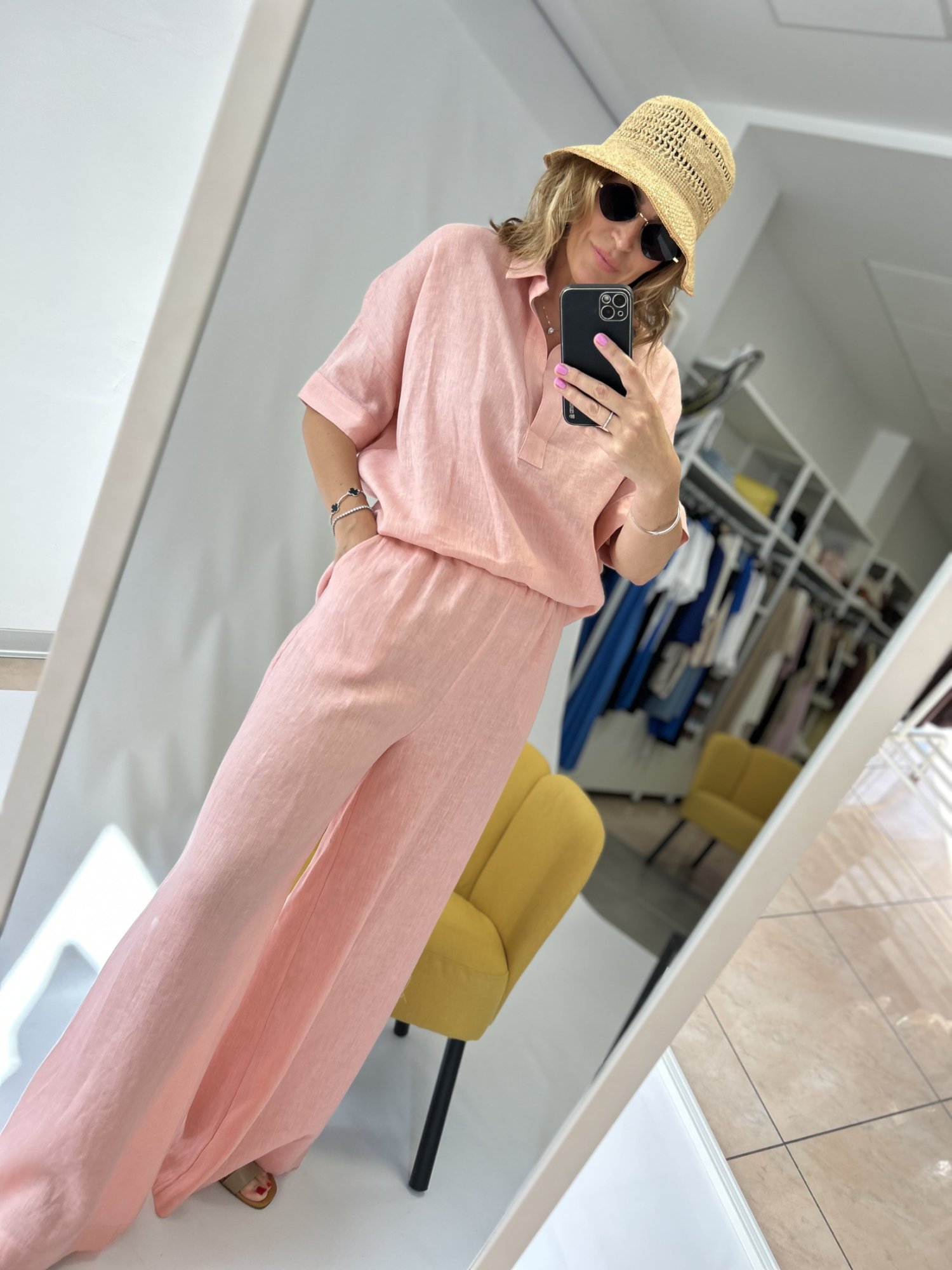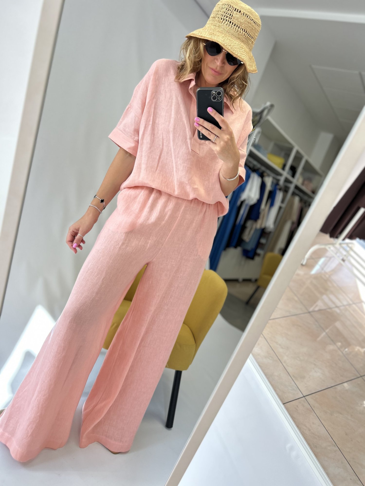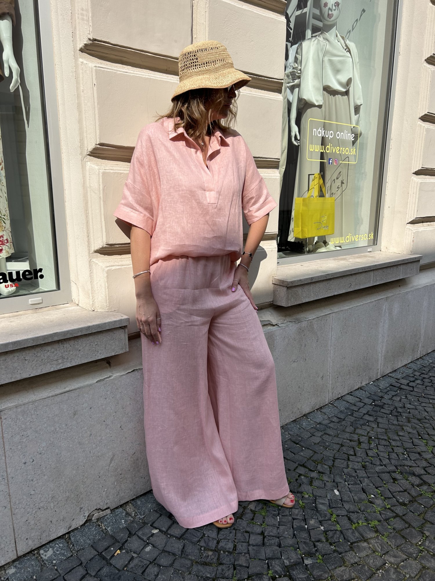 Dámske dlhé široké ľanové nohavice.