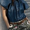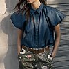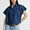 Dámska bavlnená rifľová košeľa bez rukávov.