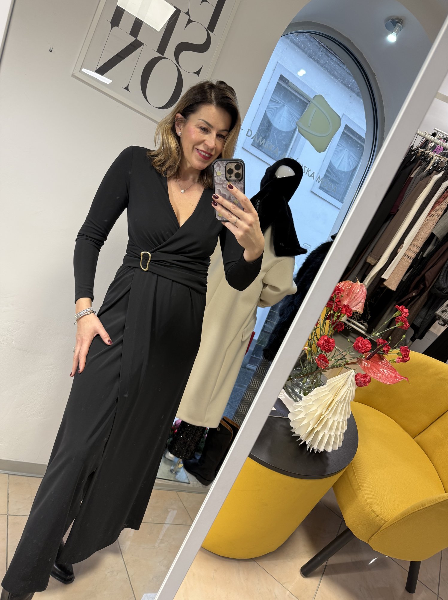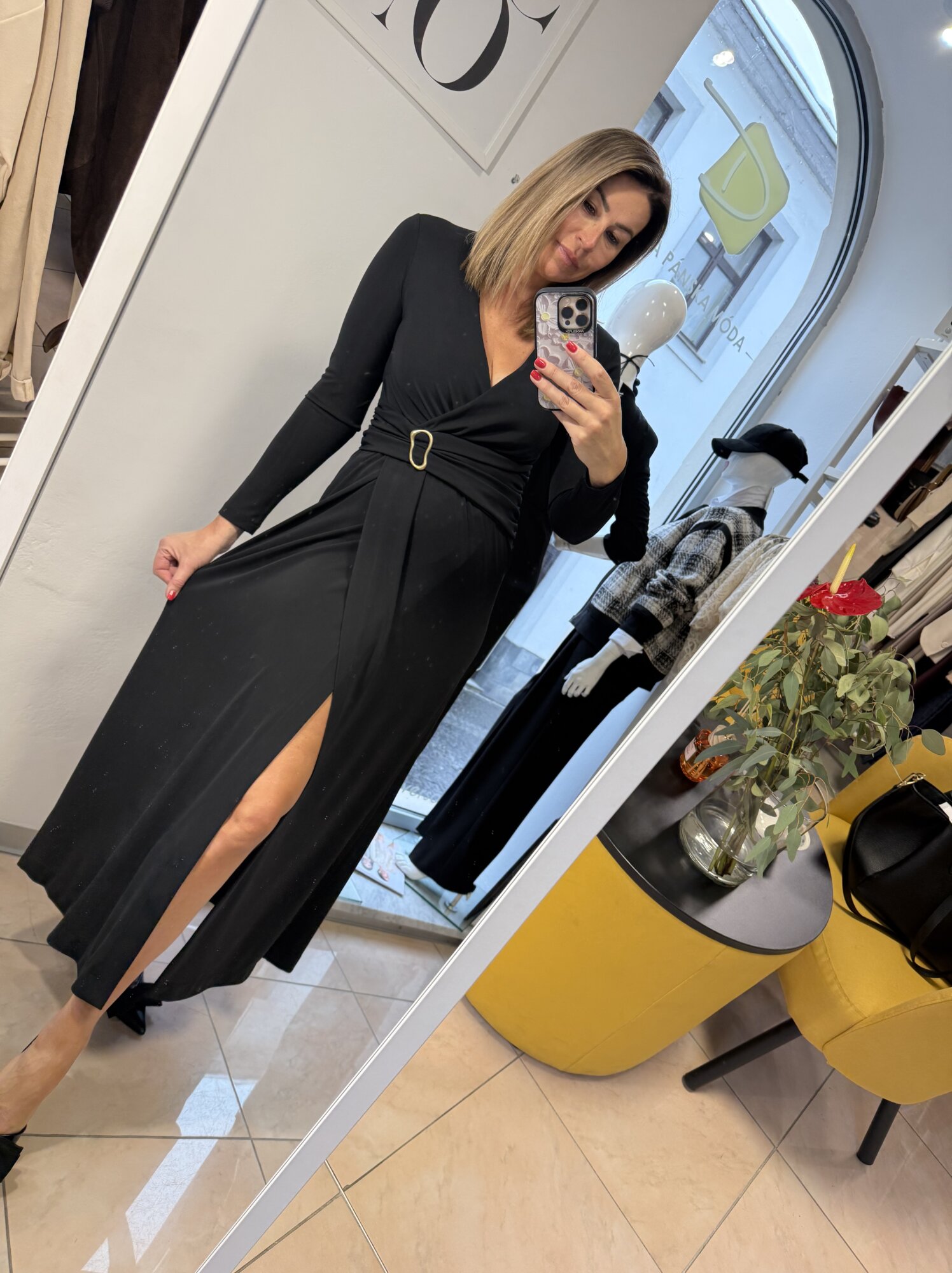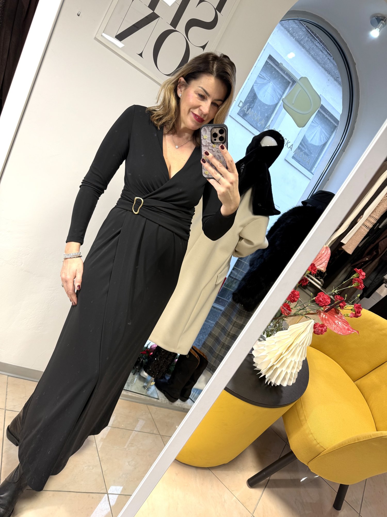 Elegantné dámske šaty s dlhým rukávom.