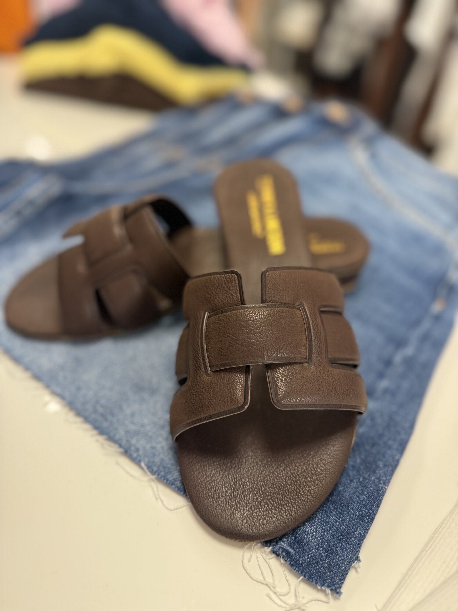 Dámske kožené šľapky.