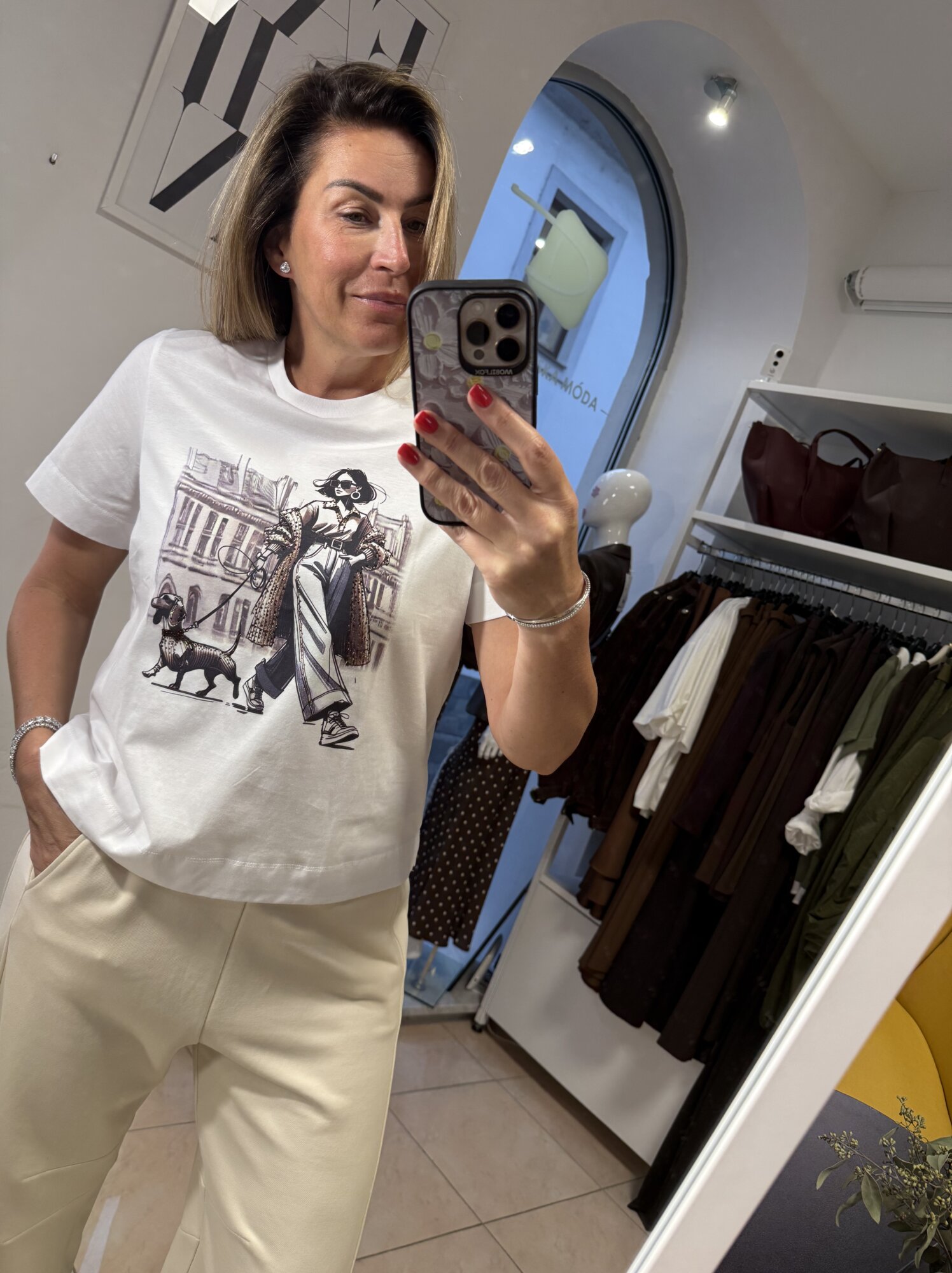 Dámske biele tričko s potlačou.